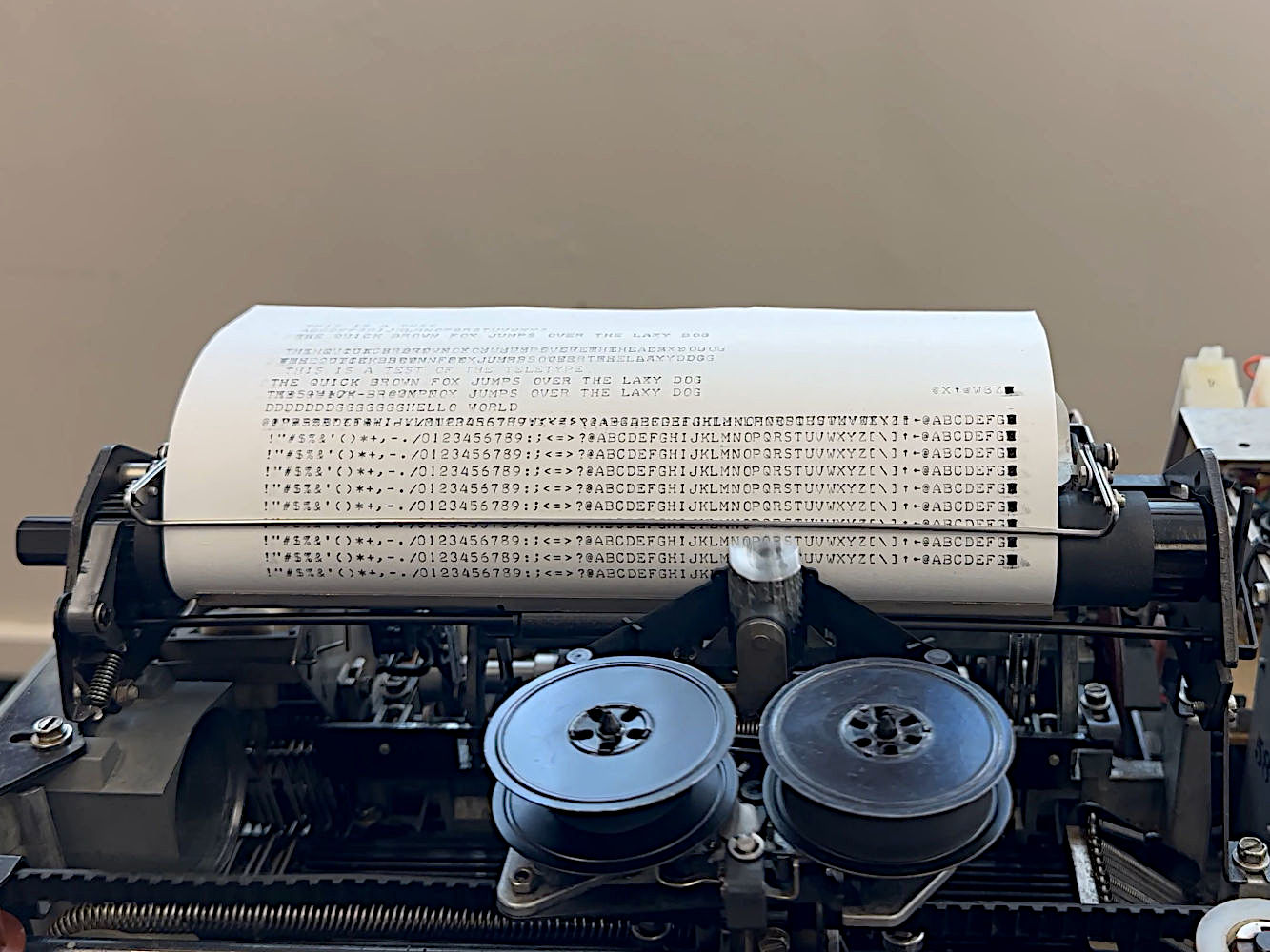It is interesting to ask why the glitches from the mis-adjusted distributor had no impact on the Teletype when operating in local mode. We suspect that they were simply too short to be noticed by the electromechanical serial-to-parallel data receiver in the Teletype.