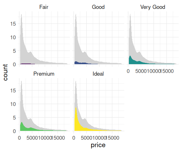 LS0tCnRpdGxlOiAiVmlzdWFsaXppbmcgRGlzdHJpYnV0aW9ucyIKb3V0cHV0OgogIGh0bWxfZG9jdW1lbnQ6CiAgICB0b2M6IHllcwogICAgY29kZV9mb2xkaW5nOiBzaG93CiAgICBjb2RlX2Rvd25sb2FkOiB0cnVlCi0tLQoKPGxpbmsgcmVsPSJzdHlsZXNoZWV0IiBocmVmPSJzdGF0NDU4MC5jc3MiIHR5cGU9InRleHQvY3NzIiAvPgo8IS0tIHRpdGxlIGJhc2VkIG9uIFdpbGtlJ3MgY2hhcHRlciAtLT4KCmBgYHtyIHNldHVwLCBpbmNsdWRlID0gRkFMU0UsIG1lc3NhZ2UgPSBGQUxTRX0Kc291cmNlKGhlcmU6OmhlcmUoInNldHVwLlIiKSkKa25pdHI6Om9wdHNfY2h1bmskc2V0KGNvbGxhcHNlID0gVFJVRSwgbWVzc2FnZSA9IEZBTFNFLAogICAgICAgICAgICAgICAgICAgICAgZmlnLmhlaWdodCA9IDUsIGZpZy53aWR0aCA9IDYsIGZpZy5hbGlnbiA9ICJjZW50ZXIiKQoKc2V0LnNlZWQoMTIzNDUpCmxpYnJhcnkoZHBseXIpCmxpYnJhcnkoZ2dwbG90MikKbGlicmFyeShsYXR0aWNlKQpsaWJyYXJ5KGdyaWRFeHRyYSkKc291cmNlKGhlcmU6OmhlcmUoImRhdGFzZXRzLlIiKSkKYGBgCgoKIyMgSW50cm9kdWN0aW9uCgpPbmNlIHRoZXJlIGFyZSBtb3JlIHRoYW4gYSBoYW5kZnVsIG9mIG51bWVyaWMgZGF0YSB2YWx1ZXMgaXQgaXMgb2Z0ZW4KdXNlZnVsIHRvIHN0ZXAgYmFjayBhbmQgbG9vayBhdCB0aGUgX2Rpc3RyaWJ1dGlvbl8gb2YgdGhlIGRhdGEgdmFsdWVzOgoKKiBXaGVyZSBpcyB0aGUgYnVsayBvZiB0aGUgZGF0YSBsb2NhdGVkPwoKKiBJcyB0aGVyZSBhIHNpbmdsZSBhcmVhIG9mIGNvbmNlbnRyYXRpb24gb3IgYXJlIHRoZXJlIHNldmVyYWw/CgoqIElzIHRoZSBkYXRhIGRpc3RyaWJ1dGlvbiBzeW1tZXRyaWMgb3IgaXMgaXQgc2tld2VkLCBpLmUuIHRyYWlscyBvZmYKICBtb3JlIHNsb3dseSBpbiBvbmUgZGlyZWN0aW9uIG9yIGFub3RoZXI/CgoqIEFyZSB0aGVyZSBleHRyZW1lLCBvciBvdXRseWluZywgdmFsdWVzPwoKKiBBcmUgdGhlcmUgYW55IHN1c3BpY2lvdXMgb3IgaW1wb3NzaWJsZSB2YWx1ZXM/CgoqIEFyZSB0aGVyZSBnYXBzIGluIHRoZSBkYXRhPwoKKiBJcyB0aGVyZSByb3VuZGluZywgZS5nLiB0byBpbnRlZ2VyIHZhbHVlcywgb3IgX2hlYXBpbmdfLCBpLmUuIGEKICBmZXcgcGFydGljdWxhciB2YWx1ZXMgb2NjdXIgdmVyeSBmcmVxdWVudGx5PwoKUGxvdHMgZm9yIHZpc3VhbGl6aW5nIGRpc3RyaWJ1dGlvbnMgaW5jbHVkZQoKKiBTdHJpcCBwbG90cy4KCiogSGlzdG9ncmFtcy4KCiogRGVuc2l0eSBwbG90cy4KCiogQm94IHBsb3RzLgoKKiBWaW9saW4gcGxvdHMuCgoqIFN3YXJtIHBsb3RzLgoKKiBEZW5zaXR5IHJpZGdlcwoKCiMjIFN0cmlwIFBsb3RzCgoKIyMjIFN0cmlwIFBsb3QgQmFzaWNzCgpBIHZhcmlhbnQgb2YgdGhlIGRvdCBwbG90IGlzIGtub3duIGFzIGEgX3N0cmlwIHBsb3RfLgoKQSBzdHJpcCBwbG90IGZvciB0aGUgY2l0eSB0ZW1wZXJhdHVyZSBkYXRhIGlzCgpgYGB7ciwgZmlnLmhlaWdodCA9IDIsIHdhcm5pbmcgPSBGQUxTRSwgY2xhc3Muc291cmNlID0gImZvbGQtaGlkZSJ9CnRobSA8LSB0aGVtZV9taW5pbWFsKCkgKwogICAgdGhlbWUodGV4dCA9IGVsZW1lbnRfdGV4dChzaXplID0gMTYpKQpnZ3Bsb3QoY2l0eXRlbXBzKSArCiAgICBnZW9tX3BvaW50KGFlcyh4ID0gdGVtcCwgeSA9ICJBbGwiKSkgKwogICAgdGhtICsKICAgIHRoZW1lKGF4aXMudGl0bGUueSA9IGVsZW1lbnRfYmxhbmsoKSwKICAgICAgICAgIGF4aXMudGV4dC55ID0gZWxlbWVudF9ibGFuaygpKQpgYGAKClRoZSBzdHJpcCBwbG90IGNhbiByZXZlYWwgZ2FwcyBhbmQgb3V0bGllcnMuCgpBZnRlciBsb29raW5nIGF0IHRoZSBwbG90IHdlIG1pZ2h0IHdhbnQgdG8gZXhhbWluZSB0aGUgaGlnaCBhbmQKbG93IHZhbHVlczoKCmBgYHtyfQpmaWx0ZXIoY2l0eXRlbXBzLCB0ZW1wID4gODUpCmZpbHRlcihjaXR5dGVtcHMsIHRlbXAgPCAxMCkKYGBgCgpGb3IgdGhlIGVydXB0aW9uIGR1cmF0aW9ucyBpbiB0aGUgYGZhaXRoZnVsYCBkYXRhIGEgc3RyaXAgcGxvdCBzaG93cwp0aGUgdHdvIG1vZGVzIGFyb3VuZCAyIGFuZCA0IG1pbnV0ZXM6CgpgYGB7ciwgZmlnLmhlaWdodCA9IDIsIHdhcm5pbmcgPSBGQUxTRSwgY2xhc3Muc291cmNlID0gImZvbGQtaGlkZSJ9CmdncGxvdChmYWl0aGZ1bCkgKwogICAgZ2VvbV9wb2ludChhZXMoeCA9IGVydXB0aW9ucywgeSA9ICJBbGwiKSkgKwogICAgdGhtICsKICAgIHRoZW1lKGF4aXMudGl0bGUueSA9IGVsZW1lbnRfYmxhbmsoKSwKICAgICAgICAgIGF4aXMudGV4dC55ID0gZWxlbWVudF9ibGFuaygpKQpgYGAKCgojIyMgTXVsdGlwbGUgR3JvdXBzCgpTdHJpcCAgcGxvdHMgYXJlIG1vc3QgdXNlZnVsIGZvciBzaG93aW5nIHN1YnNldHMgY29ycmVzcG9uZGluZyB0byBhCmNhdGVnb3JpY2FsIHZhcmlhYmxlLgoKQSBzdHJpcCBwbG90IGZvciB0aGUgeWllbGRzIGZvciBkaWZmZXJlbnQgdmFyaWV0aWVzIGluIHRoZSBiYXJsZXkgZGF0YQppcwoKYGBge3IsIGNsYXNzLnNvdXJjZSA9ICJmb2xkLWhpZGUifQpnZ3Bsb3QoYmFybGV5KSArCiAgICBnZW9tX3BvaW50KGFlcyh4ID0geWllbGQsIHkgPSB2YXJpZXR5KSkgKwogICAgdGhlbWVfbWluaW1hbCgpICsKICAgIHRobQpgYGAKCgojIyMgU2NhbGFiaWxpdHkKClNjYWxhYmlsaXR5IGluIHRoaXMgZm9ybSBpcyBsaW1pdGVkIGR1ZSB0byBvdmVyLXBsb3R0aW5nLgoKQSBzaW1wbGUgc3RyaXAgcGxvdCBvZiBgcHJpY2VgIHdpdGhpbiB0aGUgZGlmZmVyZW50IGBjdXRgIGxldmVscyBpbgp0aGUgYGRpYW1vbmRzYCBkYXRhIGlzIG5vdCB2ZXJ5IGhlbHBmdWw6CgpgYGB7ciwgY2xhc3Muc291cmNlID0gImZvbGQtaGlkZSJ9CmdncGxvdChkaWFtb25kcykgKwogICAgZ2VvbV9wb2ludChhZXMoeCA9IHByaWNlLCB5ID0gY3V0KSkgKwogICAgdGhtICsKICAgIHRoZW1lKGF4aXMudGl0bGUueSA9IGVsZW1lbnRfYmxhbmsoKSkKYGBgCgpTZXZlcmFsIGFwcHJvYWNoZXMgYXJlIGF2YWlsYWJsZSB0byByZWR1Y2UgdGhlIGltcGFjdCBvZiBvdmVyLXBsb3R0aW5nOgoKKiByZWR1Y2UgdGhlIHBvaW50IHNpemU7CgoqIHJhbmRvbSBkaXNwbGFjZW1lbnQgb2YgcG9pbnRzLCBjYWxsZWQgX2ppdHRlcmluZ187CgoqIG1ha2luZyB0aGUgcG9pbnRzIHRyYW5zbHVjZW50LCBvciBfYWxwaGEgYmxlbmRpbmdfLgoKQ29tYmluaW5nIGFsbCB0aHJlZSBmb3IgZXhhbWluaW5nIGBwcmljZWAgd2l0aGluIGBjdXRgIGZvciB0aGUKYGRpYW1vbmRzYCBkYXRhIHByb2R1Y2VzCgpgYGB7ciwgY2xhc3Muc291cmNlID0gImZvbGQtaGlkZSJ9CmdncGxvdChkaWFtb25kcykgKwogICAgZ2VvbV9wb2ludChhZXMoeCA9IHByaWNlLCB5ID0gY3V0KSwKICAgICAgICAgICAgICAgc2l6ZSA9IDAuMiwKICAgICAgICAgICAgICAgcG9zaXRpb24gPSBwb3NpdGlvbl9qaXR0ZXIod2lkdGggPSAwKSwKICAgICAgICAgICAgICAgYWxwaGEgPSAwLjIpICsKICAgIHRobSArIHRoZW1lKGF4aXMudGl0bGUueSA9IGVsZW1lbnRfYmxhbmsoKSkKYGBgCgpTa2V3bmVzcyBvZiB0aGUgcHJpY2UgZGlzdHJpYnV0aW9ucyBjYW4gYmUgc2VlbiBpbiB0aGlzIHBsb3QsIHRob3VnaApvdGhlciBhcHByb2FjaGVzIHdpbGwgc2hvdyB0aGlzIG1vcmUgY2xlYXJseS4KCkEgcGVjdWxpYXIgZmVhdHVyZSByZXZlbGVkIGJ5IHRoaXMgcGxvdCBpcyB0aGUgZ2FwIGJlbG93CjIwMDAuCgpFeGFtaW5pbmcgdGhlIHN1YnNldCB3aXRoIGBwcmljZSA8IDIwMDBgIHNob3dzIHRoZSBnYXAgaXMKcm91Z2hseSBzeW1tZXRyaWMgYXJvdW5kIDE1MDA6CgpgYGB7ciwgY2xhc3Muc291cmNlID0gImZvbGQtaGlkZSJ9CmdncGxvdChmaWx0ZXIoZGlhbW9uZHMsIHByaWNlIDwgMjAwMCkpICsKICAgIGdlb21fcG9pbnQoYWVzKHggPSBwcmljZSwgeSA9IGN1dCksCiAgICAgICAgICAgICAgIHNpemUgPSAwLjIsCiAgICAgICAgICAgICAgIHBvc2l0aW9uID0gcG9zaXRpb25faml0dGVyKHdpZHRoID0gMCksCiAgICAgICAgICAgICAgIGFscGhhID0gMC4yKSArCiAgICB0aG0gKwogICAgdGhlbWUoYXhpcy50aXRsZS55ID0gZWxlbWVudF9ibGFuaygpKQpgYGAKCkEgcGxvdCBhbG9uZyB0aGVzZSBsaW5lcyB3YXMgdXNlZCBvbiB0aGUgTmV3IFlvcmsgVGltZXMgW2Zyb250IHBhZ2UgZm9yCkZlYnJ1YXJ5IDIxLCAyMDIxXShgciBJTUcoIk5ZVC0yMDIxLTAyLTIxLmpwZWciKWApLgoKYGBge3IsIGVjaG8gPSBGQUxTRSwgb3V0LndpZHRoID0gIjU1JSJ9CmtuaXRyOjppbmNsdWRlX2dyYXBoaWNzKElNRygiTllULTIwMjEtMDItMjEuanBlZyIpKQpgYGAKCgojIyMgU29tZSBOb3RlcwoKKiBXaXRoIGEgZ29vZCBjb21iaW5hdGlvbiBvZiBwb2ludCBzaXplIGNob2ljZSwgaml0dGVyaW5nLCBhbmQgYWxwaGEKICBibGVuZGluZyB0aGUgc3RyaXAgcGxvdCBmb3IgZ3JvdXBzIG9mIGRhdGEgY2FuIHNjYWxlIHRvIHNldmVyYWwKICBodW5kcmVkIHRob3VzYW5kIG9ic2VydmF0aW9ucyBhbmQgdGVuIHRv