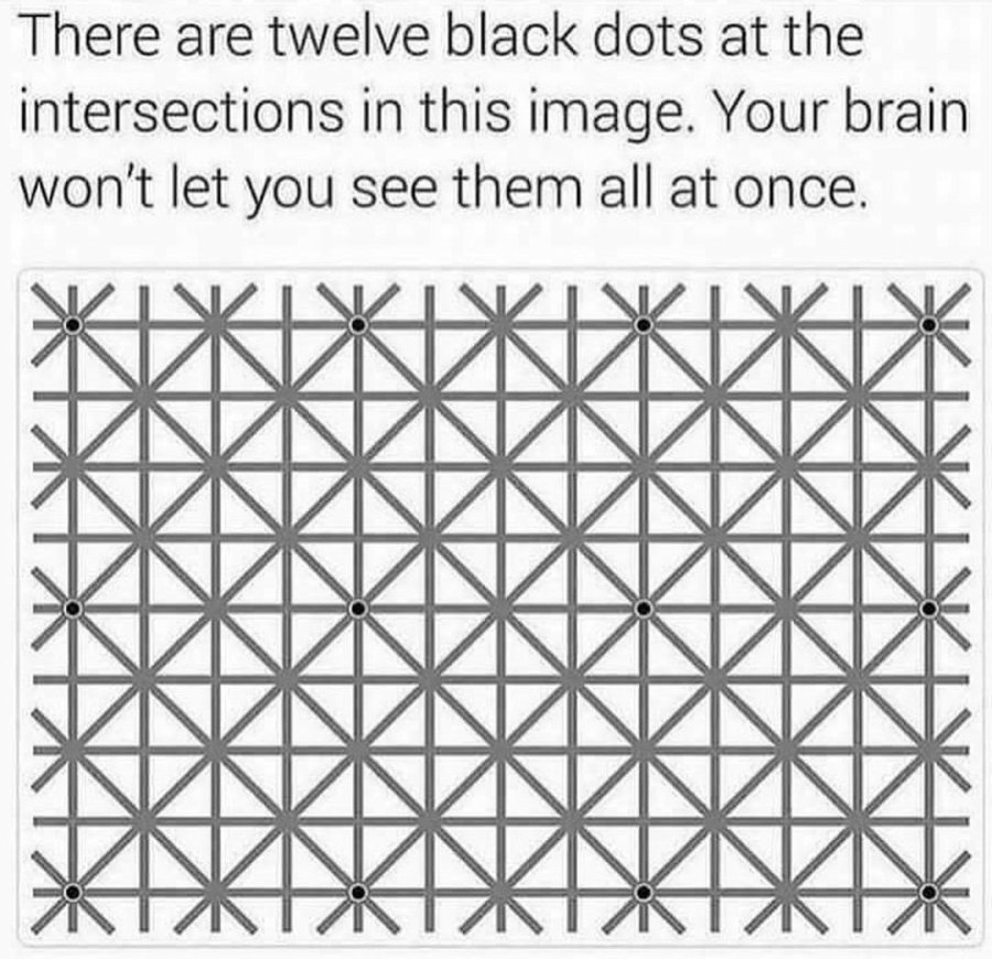 grid illusion : Black dots at the intersections appear and disappear;