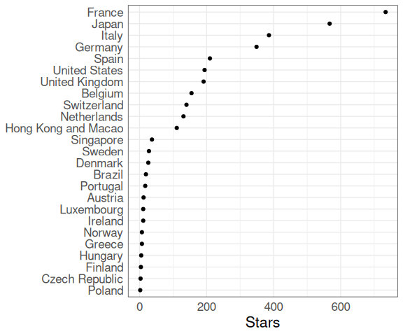 Consider the following visualizations of the 2017 Michelin star