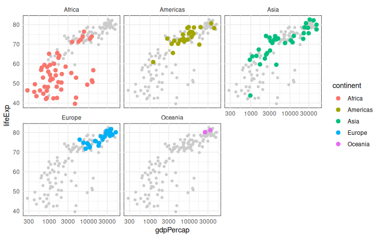 geom_point(data = mutate(gd, continent = NULL), color = "grey80") +