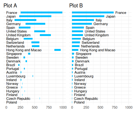 Which plot makes it easier to compare the numbers of stars for