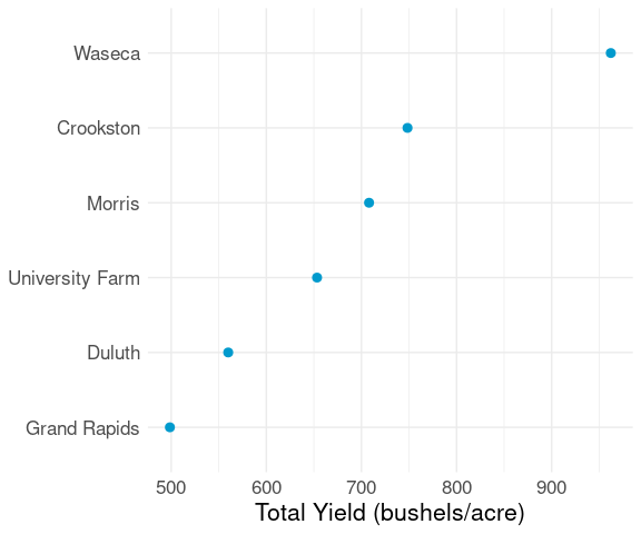 labs(x = "Total Yield (bushels/acre)", y = NULL) +