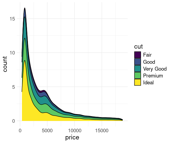 Density ridges can also show quantiles, but the details of how to request this are different. Consider this code: