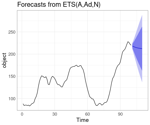 An example from the forecast package: WWWusage is a time series of the numbers of users connected to the Internet.