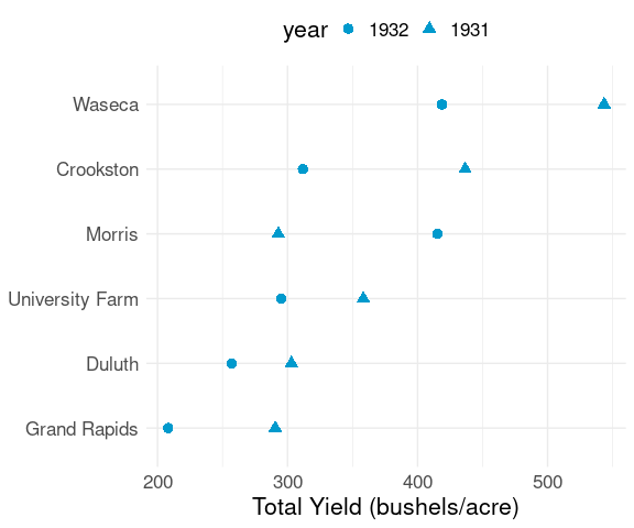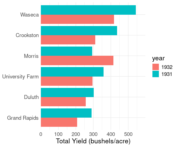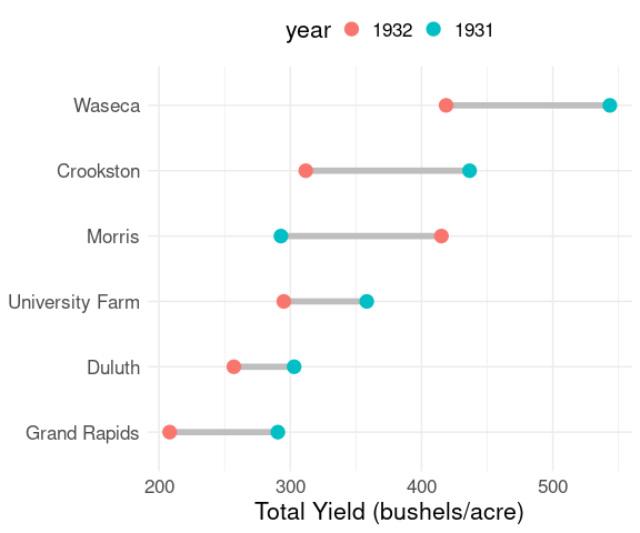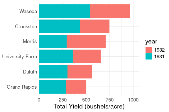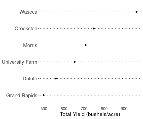 labs(x = "Total Yield (bushels/acre)", y = NULL) +