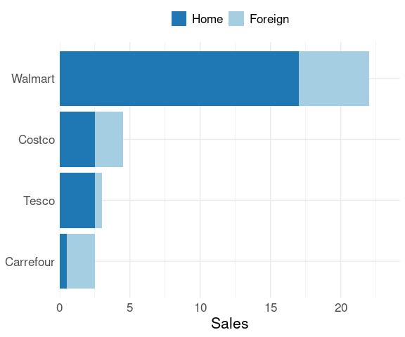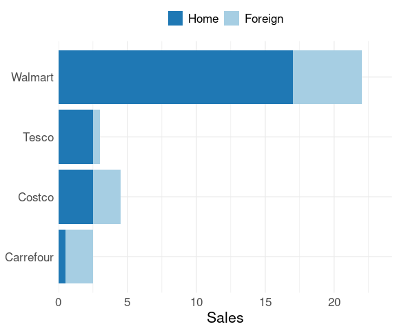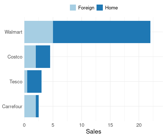Consider the stacked bar chart produced by the following code:
