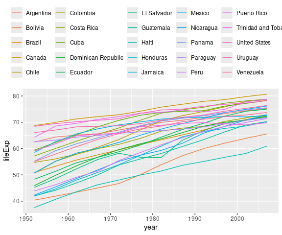 summarize(avgLifeExp = mean(lifeExp), .groups = "drop") |>