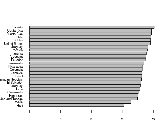 names.arg = country[order(lifeExp)],