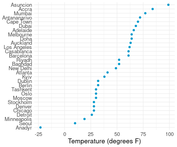 aes(x = temp, y = reorder(city, temp))) +