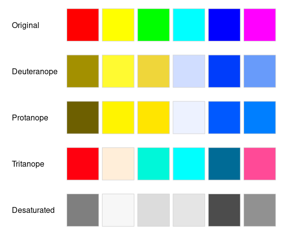Lumley, T. (2006). Color coding and color blindness in statistical graphics. ASA Statistical Computing & Graphics Newsletter, 17(2), 4–7. PDF.