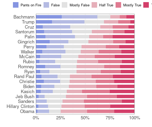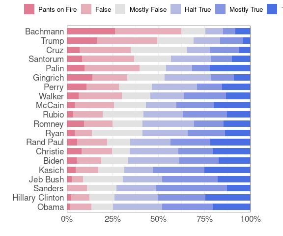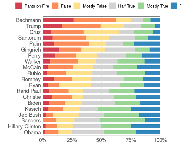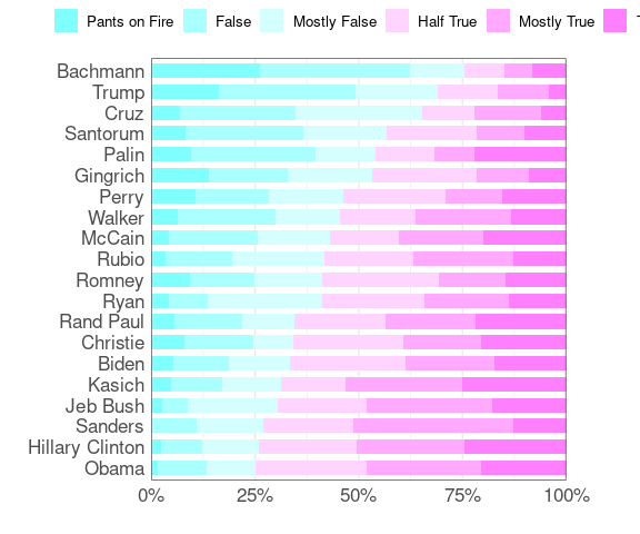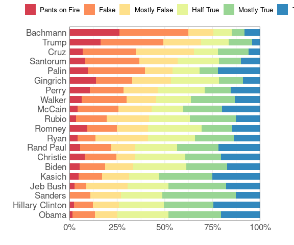 The Daily Kos chart is ordered by the percentage of statements that are more false than true. A function to produce a bar chart with a specified color palette: