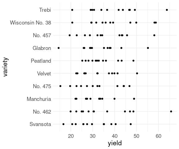 geom_point(aes(x = yield, y = variety)) +