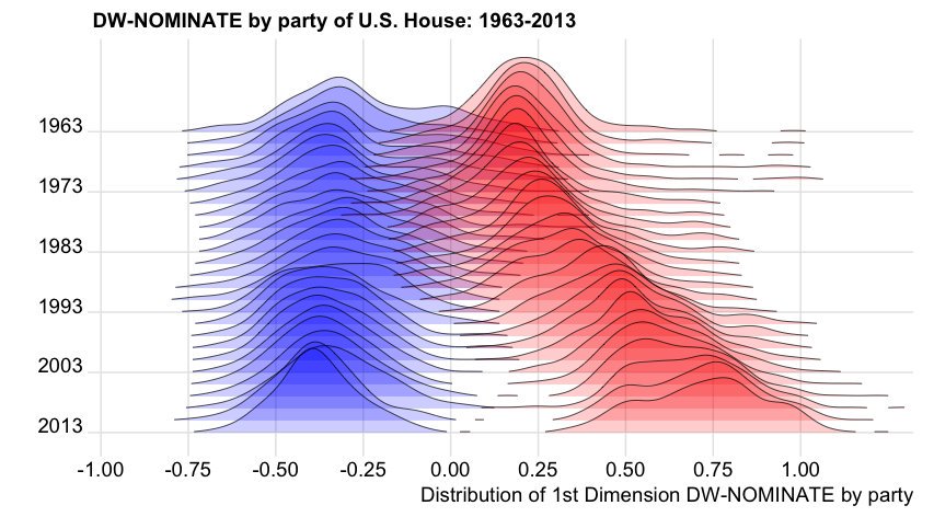 Another nice example: DW-NOMINATE scores for measuring political position of members of congress over the years: