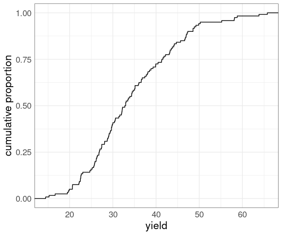 stat_ecdf(aes(x = yield)) +