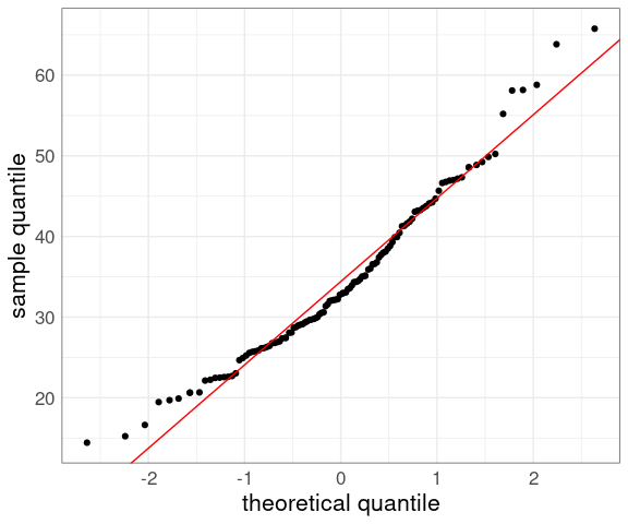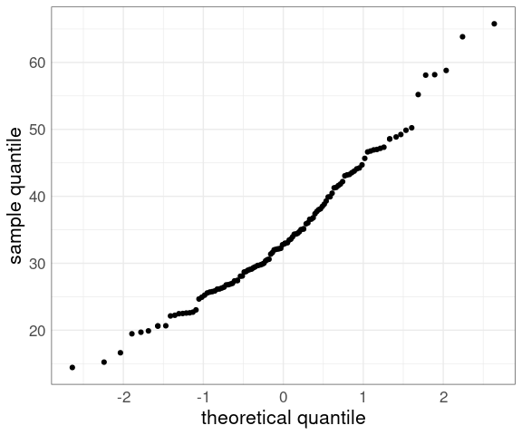 xlab("theoretical quantile") +