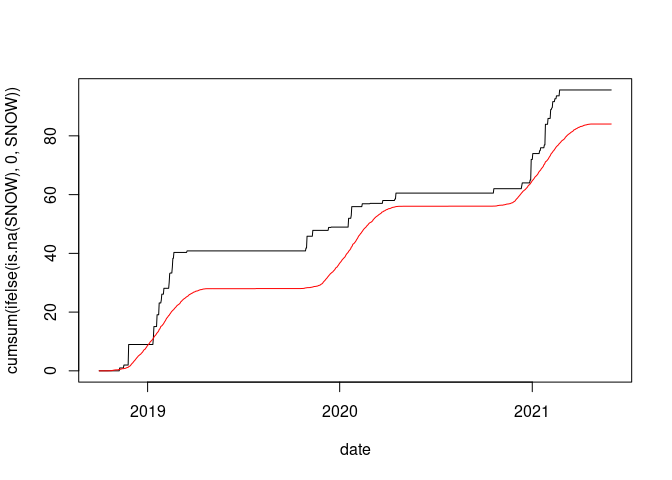 lines(wd18$date, cumsum(wd18$avsnow), col = "red")