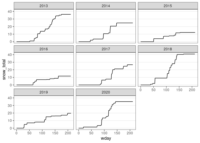 geom_line(aes(x = date, y = cumsum(ifelse(is.na(SNOW), 0, SNOW)))) +