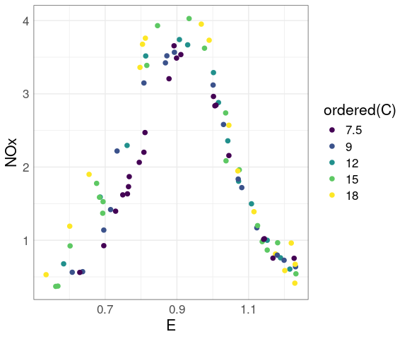 For the ethanol data there are only a small number of distinct levels for C.