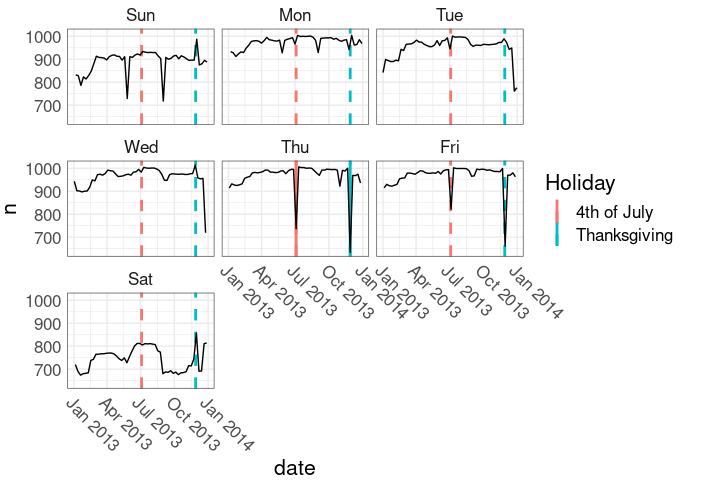 Holidays in the faceted plot: