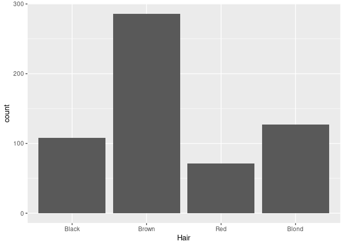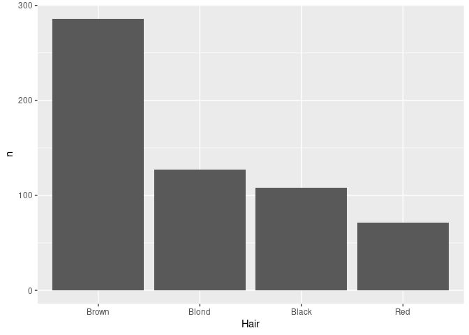 ggplot(mutate(raw, Hair = fct_infreq(Hair))) + geom_bar(aes(x = Hair))